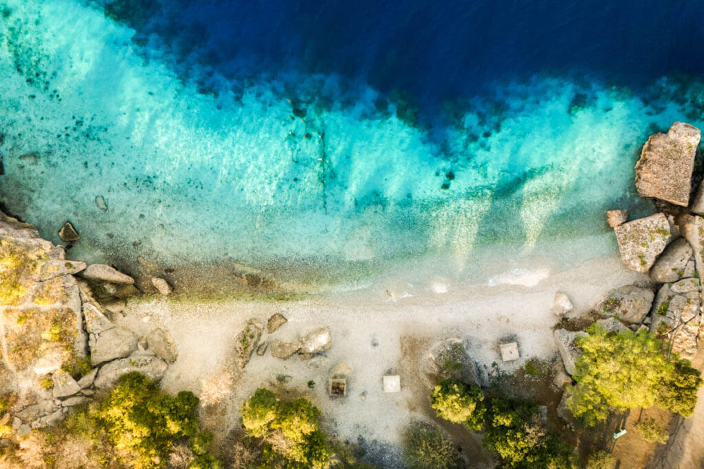 Instead of one continuous beach, you’ll find dozens of small coves, each with its own personality — some quiet and hidden, others lively and social.